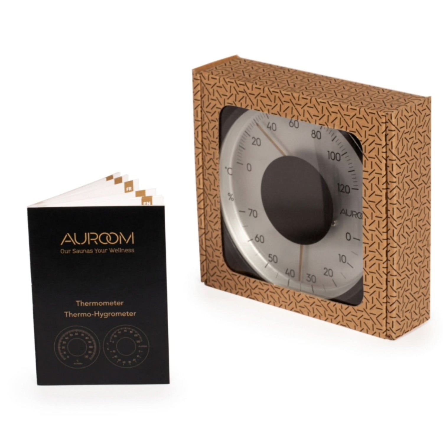 Auroom includes a complete accessory set with every Cala Glass: bucket and ladle, thermometer and hygrometer, sand timer, aroma set, sauna hat, and sauna pillow. Everything you need for your first session is in the box.