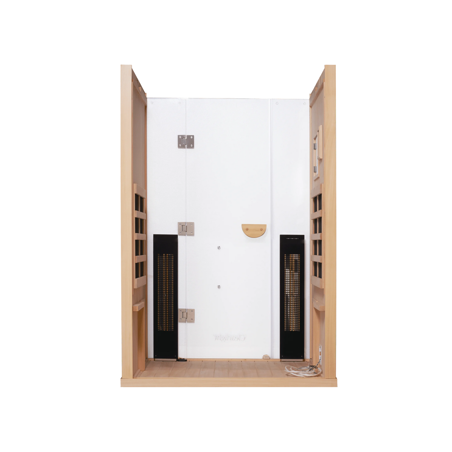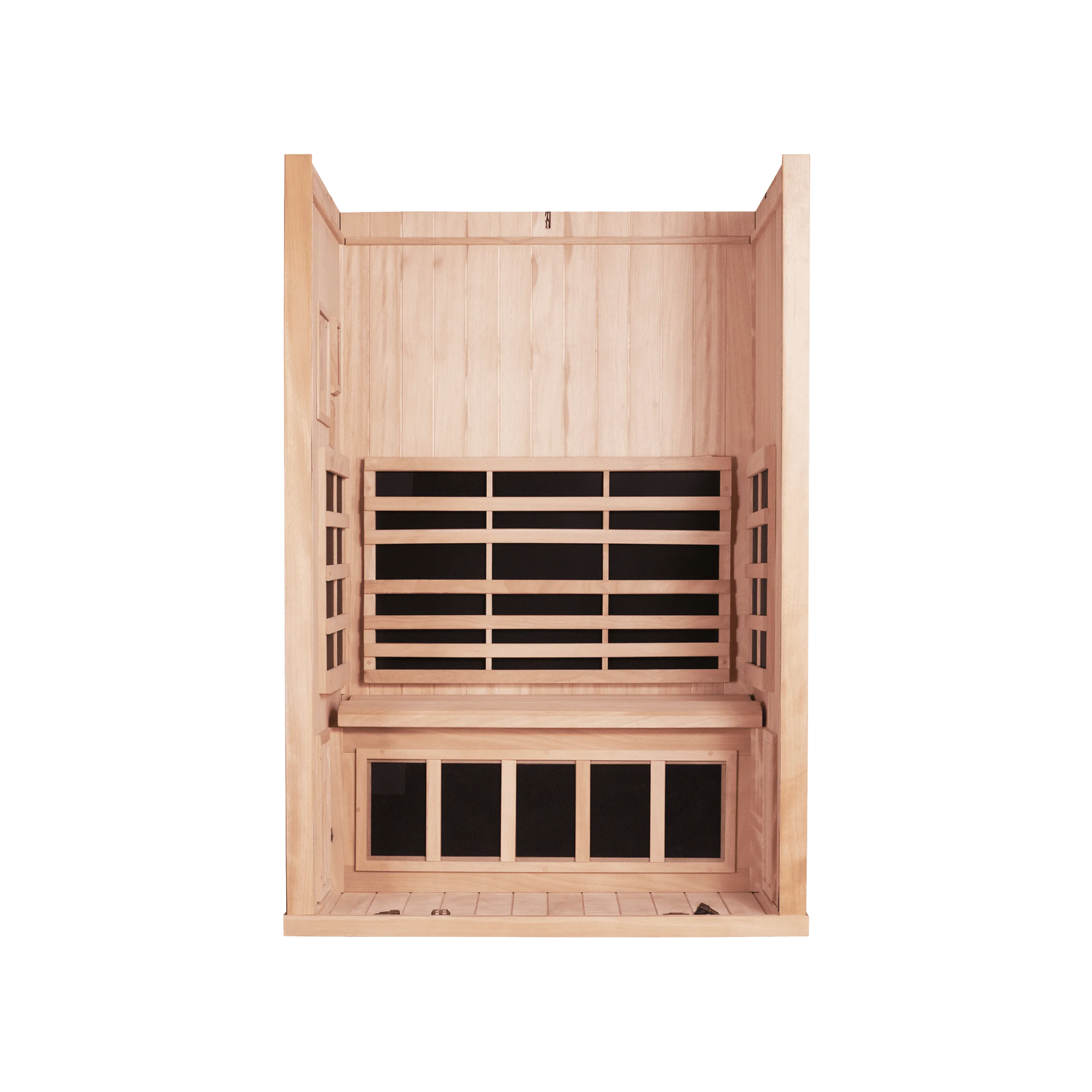 Full spectrum infrared means the Sanctuary 2 produces all three infrared wavelengths simultaneously: near infrared (700–1,200 nm) for skin health and cellular repair, mid infrared (1,200–4,000 nm) for deeper joint and muscle relief, and far infrared (4,000–14,000 nm) for the deepest tissue heating, detoxification, and cardiovascular benefits. The True Wave™ Full Spectrum heaters deliver all three at 2,260 watts total output.